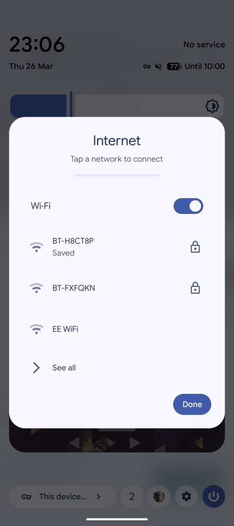 Since Android 12, when tapping the Wi-Fi QS tile, you would get a pop-up with an option that showed nearby Wi-Fi networks, further options, plus an option to enable or disable the Wi-Fi connection. Effectively, this has turned what was once a one-step process into a two-step process.